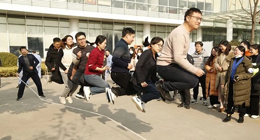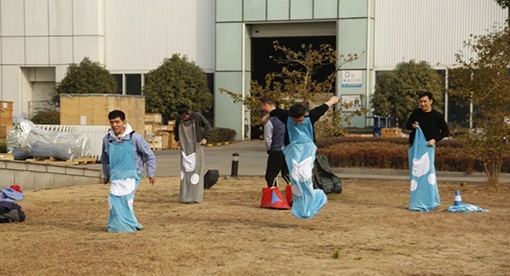 本次趣味運動會項目集健身、競技、團隊合作于一體,共設8個比賽項目:瘋狂毛毛蟲、集體跳繩、摩肩接踵、財源滾滾、邁步向前、坐地起身、兩人三足和拔河比賽,并且將傳統的抽獎游戲“一投即中”貫穿在整個比賽活動期間。